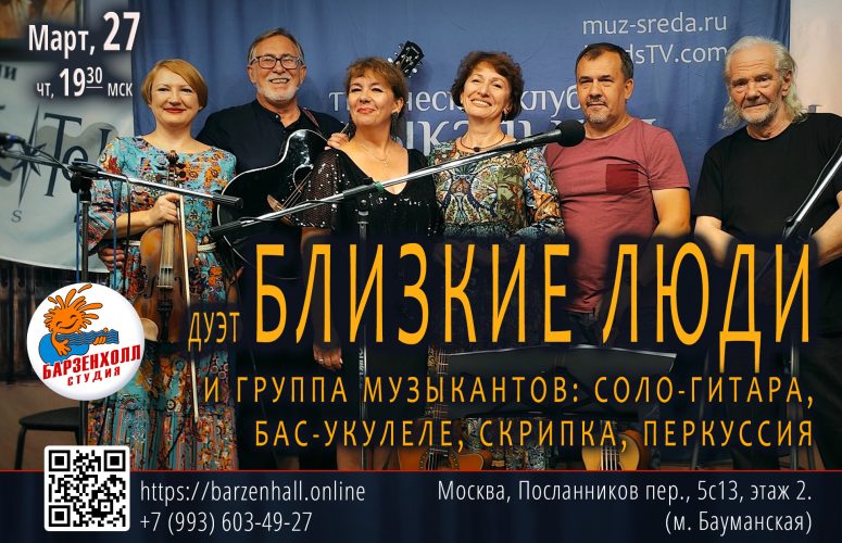 27 марта, 19:30 (чт) Дуэт «БЛИЗКИЕ ЛЮДИ» с группой музыкантов (Тольятти — Самара)