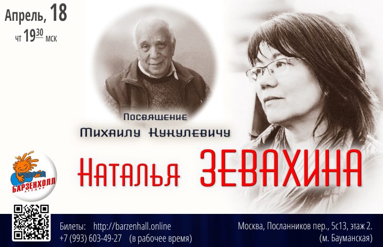 18.04.2024 (чт, 19:30) Наталья ЗЕВАХИНА ♫ Концерт «Посвящение Михаилу Кукулевичу»