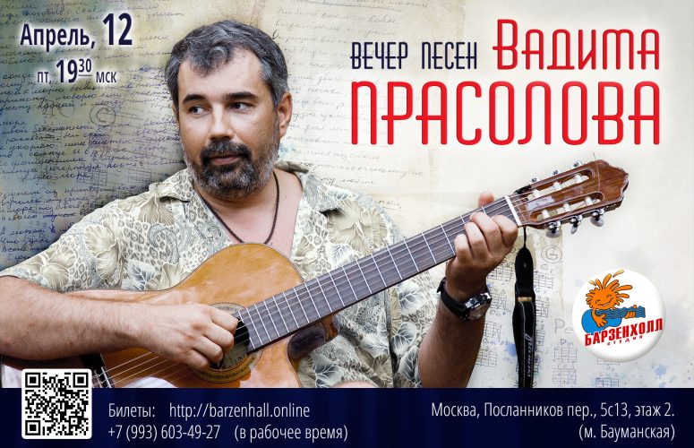 12.04.2024 (пт, 19:30) Вечер песен Вадима ПРАСОЛОВА: концерт «Серьезный разговор о любви» ♫