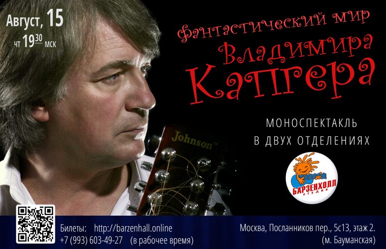 15.08.2024 (чт, 19:30мск) «Фантастический мир Владимира КАПГЕРА» ♫ Моноспектакль в двух отделениях